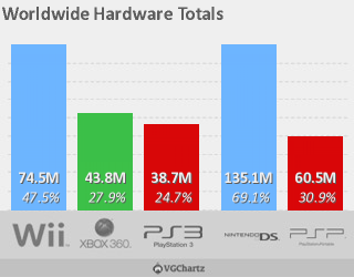 360 000 consoles au Japon et quasiment les mêmes données en Europe (dont 110 000 en France, 85 000 au Royaume-Uni), 500 000 consoles aux États-Unis. Et ce sont des données qui prennent en compte principalement les chiffres de la première semaine.